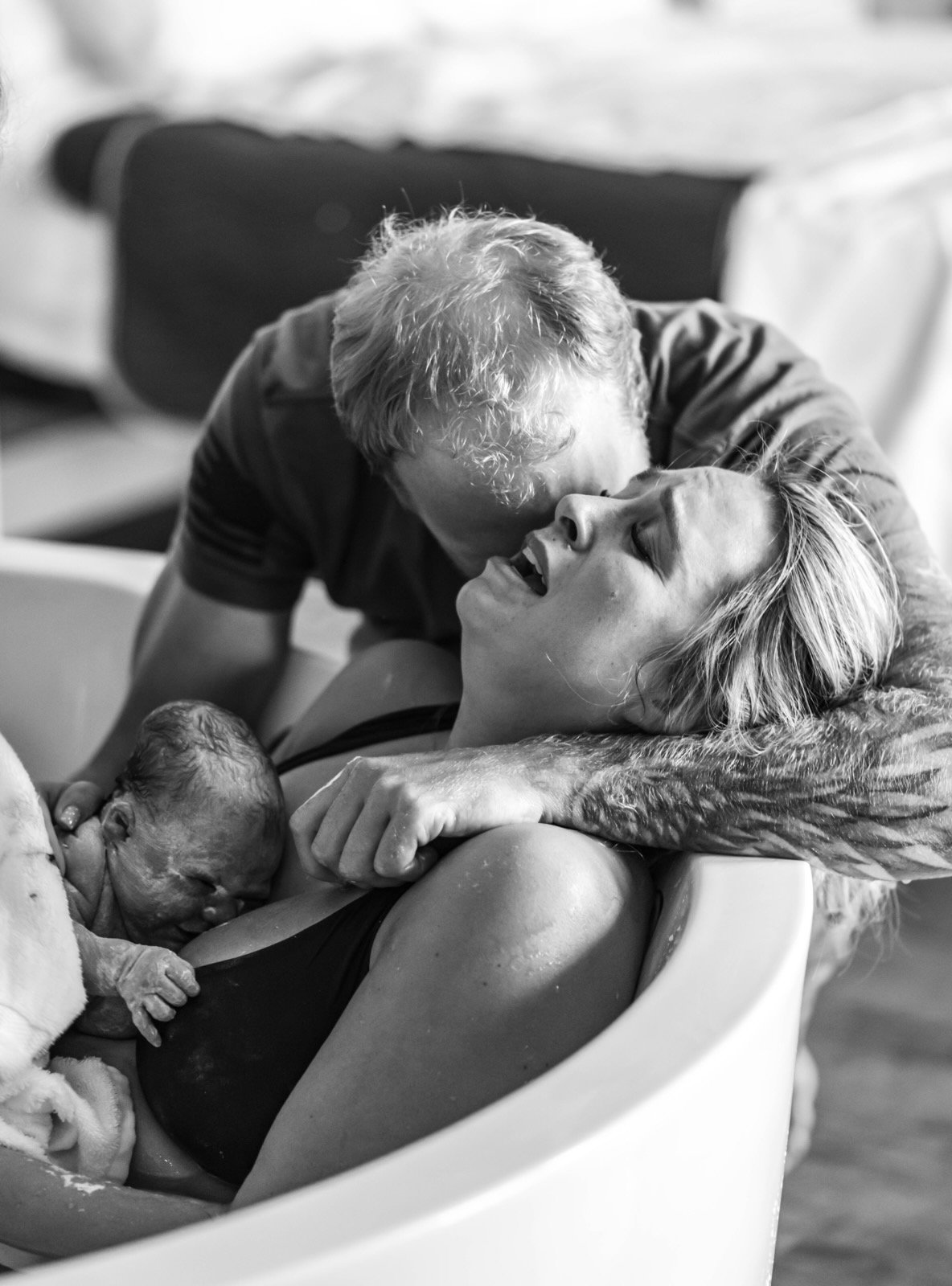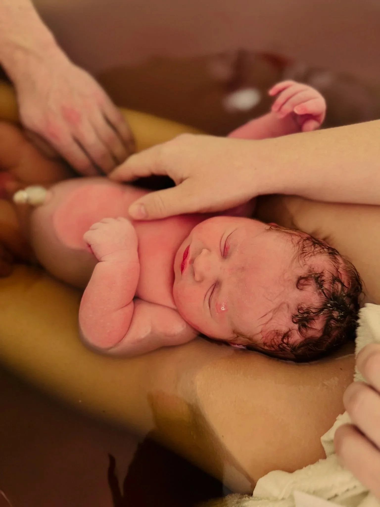 Waterbirth is the experience of laboring and giving birth in warm water. Families often describe the water as deeply comforting, helping their bodies soften and move more freely as labor unfolds and contractions grow stronger. The buoyancy of the tub eases pressure, supports movement, and can make contractions feel more manageable. When your baby is born, they are gently guided to the surface and into your arms, allowing for a calm, supported transition.